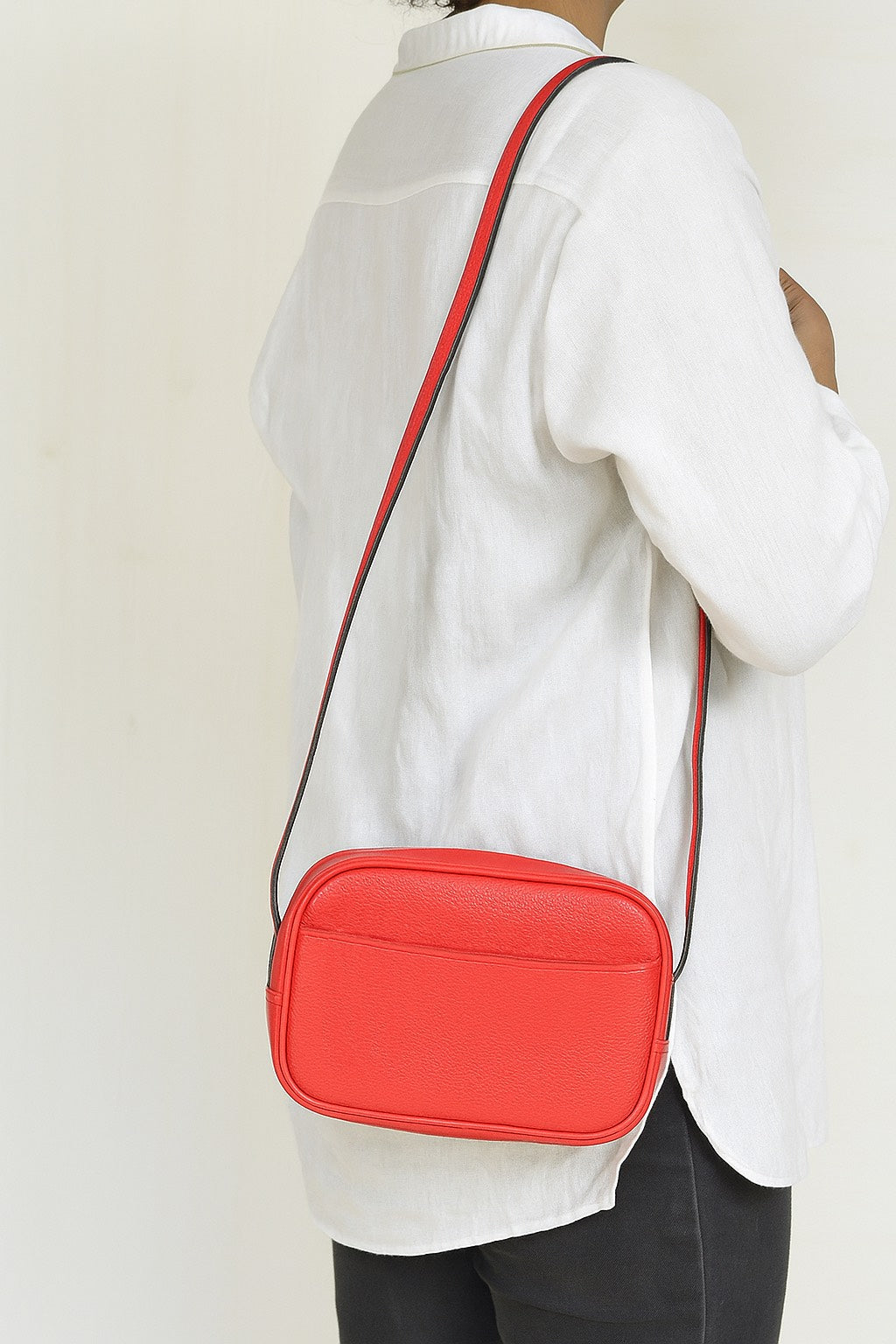 Grainy Pebble Leather Oval Camera Bag fully zipped main compartment, an adjustable Crossbody strap with shiny silver hardware. Featuring a front slip pocket secured with a concealed magdot.